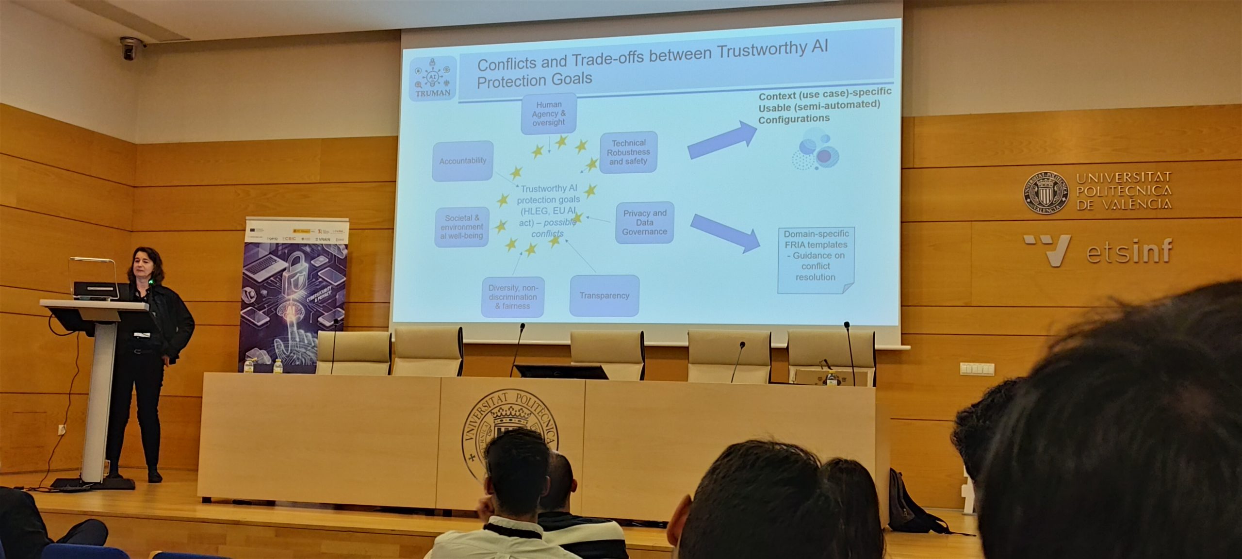 Speaking about “Trustworthy AI protection goals – Requirements and Tradeoffs” at the SPRINT Workshop on AI Security and Privacy in Valencia, Spain, Prof. Simone Fischer-Hübner from Karlstad University once again showed how challenging it is to align the different protection goals in the AI landscape, and how closely tangled the trade-offs between robustness, human-in-the-loop, trustworthiness,